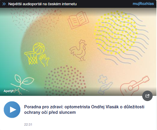 Hlavní optometrista Lexum, Mgr. Ondřej Vlasák, Ph.D., byl hostem Letního dopoledne Českého rozhlasu Brno. S moderátorem Jannisem Morasem si povídali o tom, jak v létě pečovat o oči a jak vybrat správné sluneční brýle. Poslechněte si záznam z vysílání a odpovědi na dotazy posluchačů: